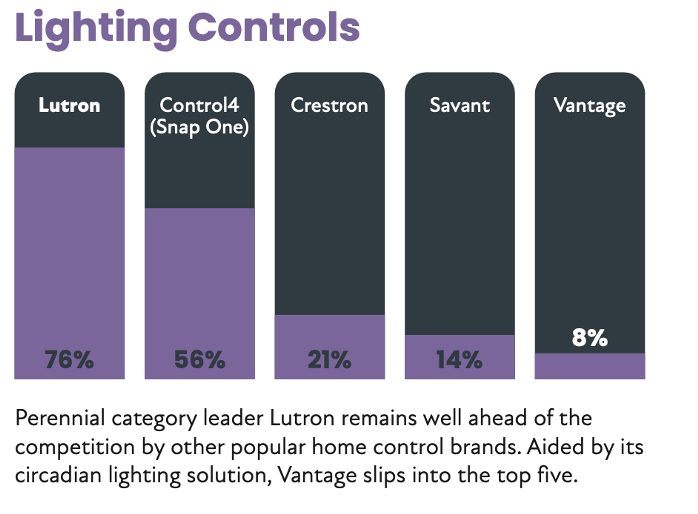 Lutron tiếp tục giữ ngôi đầu ở các hạng mục: