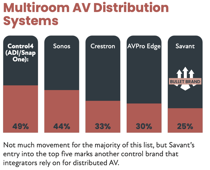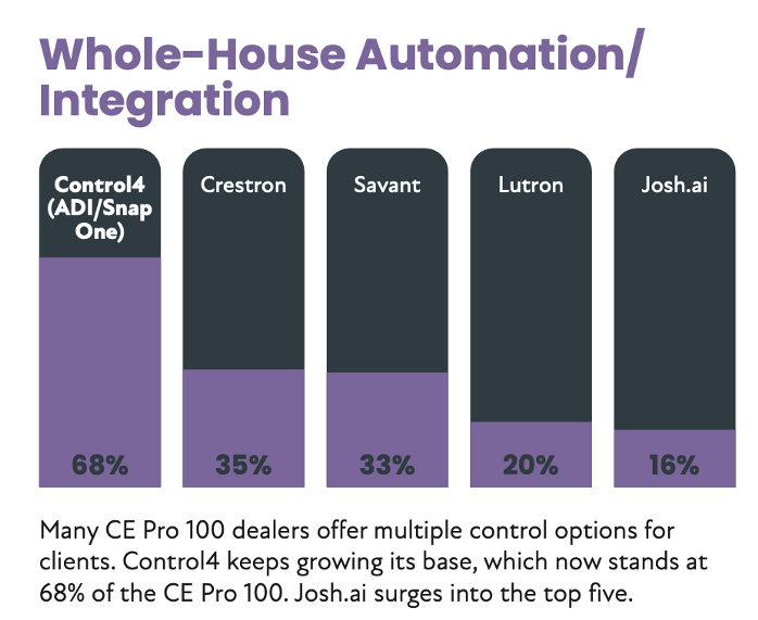 Báo cáo CE Pro 100 Brand Analysis được công bố hàng năm, dựa trên dữ liệu từ 100 công ty tích hợp hệ thống hàng đầu tại Bắc Mỹ. Báo cáo đánh giá các thương hiệu được sử dụng nhiều nhất trong hơn 50 hạng mục thiết bị, từ điều khiển chiếu sáng, rèm tự động, âm thanh, hình ảnh, đến an ninh và hạ tầng mạng.