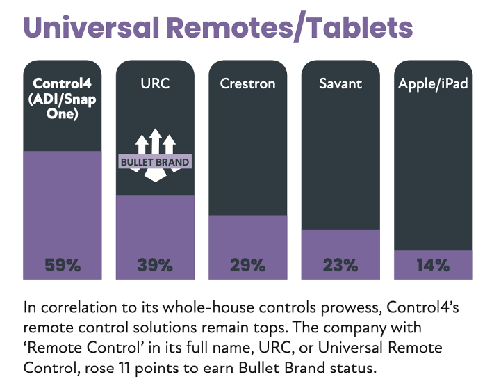 Ngoài ra Control4 còn dẫn đầu trong rất nhiều hạng mục chuyên biệt: như màn hình, remote điều khiển tốt nhất, hệ thống giải trí âm thanh đa vùng, video nhiều phòng tốt nhất, quản lý năng lượng, bảo mật mạng ...